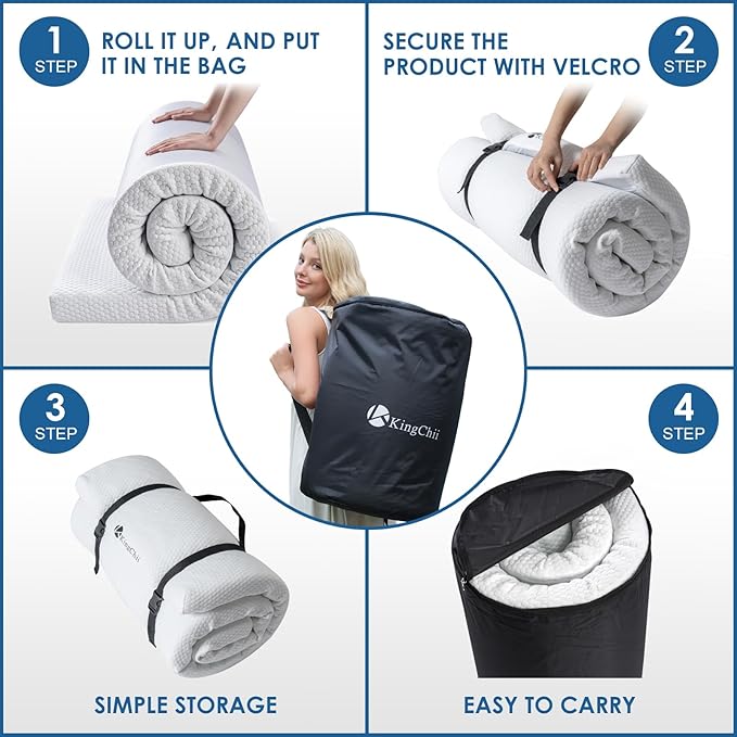 KingChii CertiPUR-US Memory Foam Camping Mattress, Portable Roll Up Travel Car Camping Mattress Sleeping Pad & Floor Mattress, Cot Mattress Guest Bed for Sleepover