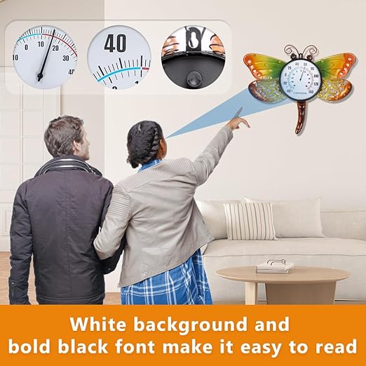 - Easy to Read Data: Delicate dragonfly shape and black large letter dial with, make this wall thermometer not only can be read clearly from a distance, but also can add a cute to the wall