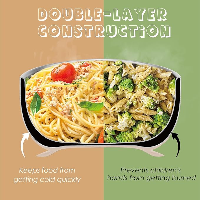 - Double-Wall Insulation for Temperature Control: Our toddler bowl’s double-wall stainless steel construction is engineered to prevent heat transfer, keeping food warm for longer while protecting your child's hands from burns. This feature makes it perfect for serving warm meals without the worry of overheating.