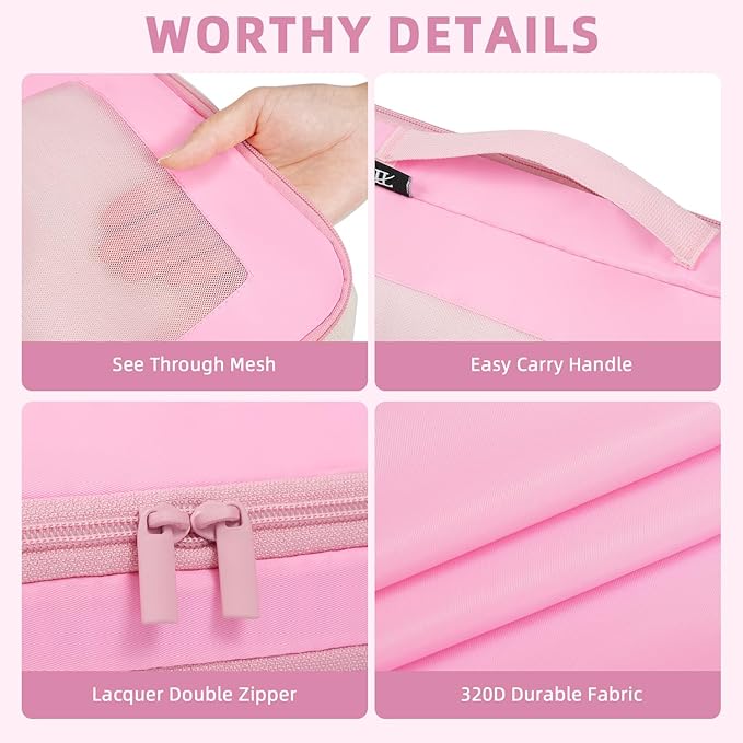BAGAIL 4 Set/6 Set/8 Set Compression Packing Cubes Travel Accessories Expandable Packing Organizers (Square Mesh, 06-Pink)