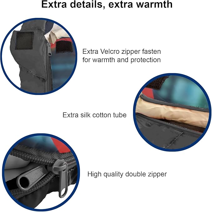 - A 3-4 SEASON CAMPING SLEEPING BAG (32-59 °F): Unlike other thin sleeping bags, from every step of the design, we kept warmth in mind for our young campers. The mummy style shape reduces unnecessary empty space to keep heat inside. Moreover, the extra draft tube, extra zipper snap, and cozy hoodie all help to keep our customers sleep sound and warm.