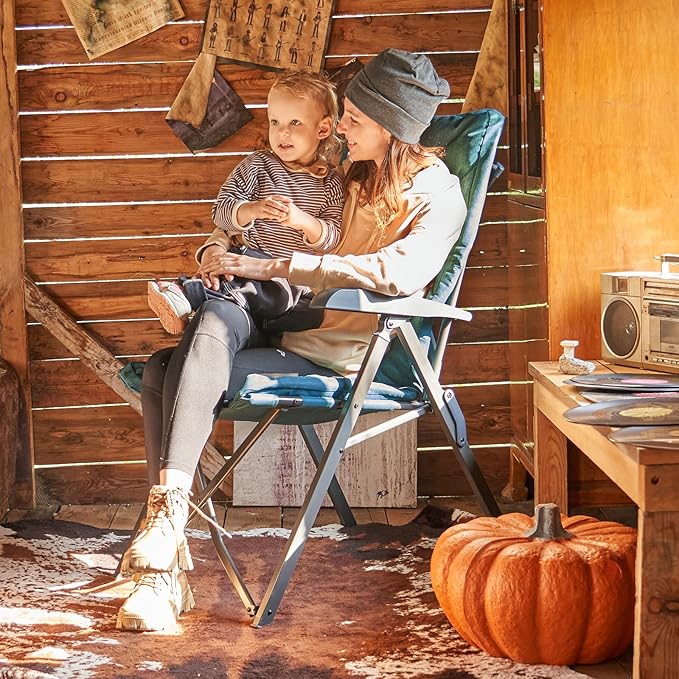 EVER ADVANCED Folding Camping Recliner Chair Fully Padded with Adjustable High Back Support Portable for Adults Patio Reclining Chair Green