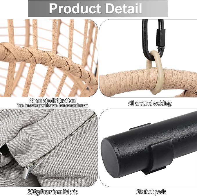 - EASY ASSEMBLY and MAINTENANCE: Designed for hassle-free setup with included instructions and all necessary tools. The removable cushion covers are also machine washable for easy maintenance.The stand allows you to place the hanging chair wherever you need it.