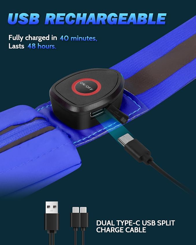 - Comfortable and Adjustable Fit: Designed to accommodate a wide range of body types, this LED running lights for runners features an adjustable length from 85.9cm- 161.7cm (33.8 in - 63.7 in), ensuring a comfortable and secure fit. Made from stretchy, breathable materials, it weighs just 0.27lb (125g) for for optimal wearer comfort