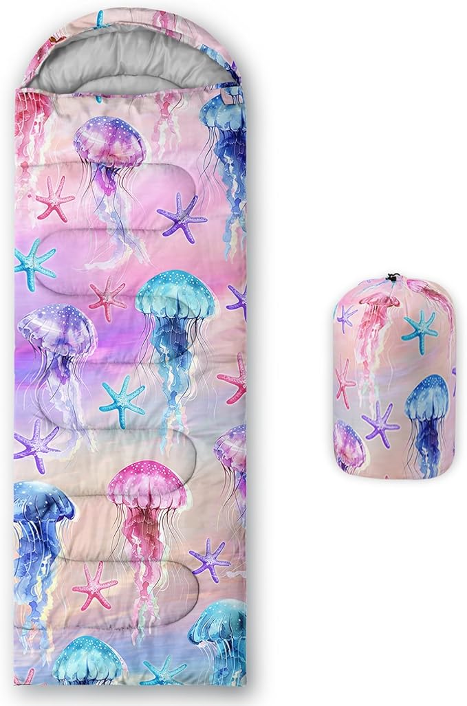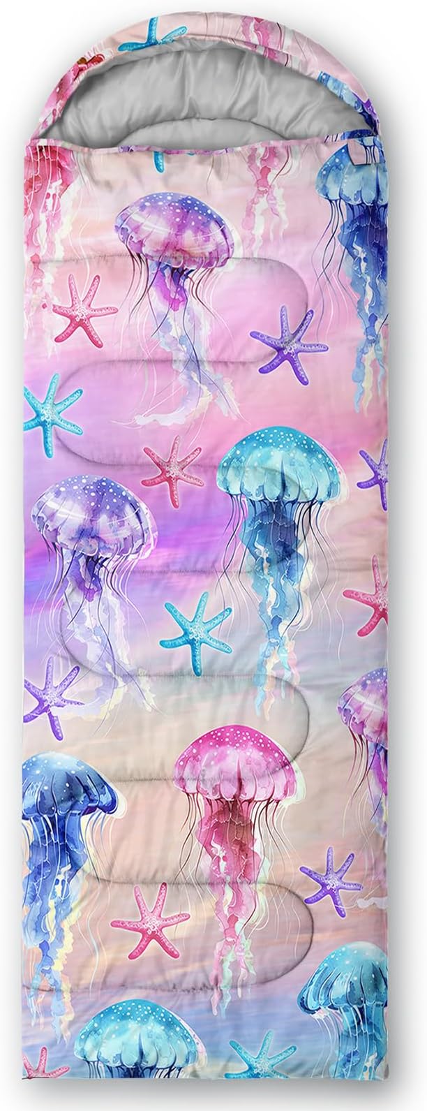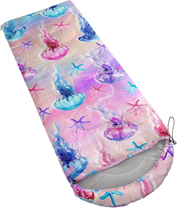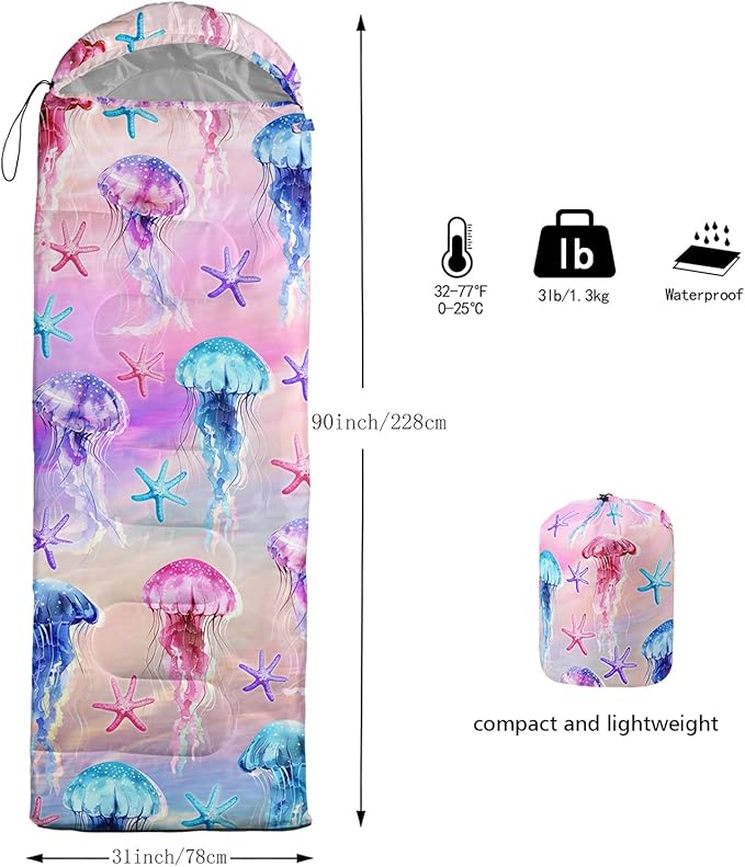 - Applicable For 3 Seasons: Our jellyfish starfish sleeping bag can be used in temperatures ranging from 32°F-77°F Except for the cold winter,sleeping bag have weatherproof to prevent from dampness,Size is 31 x 90 inches