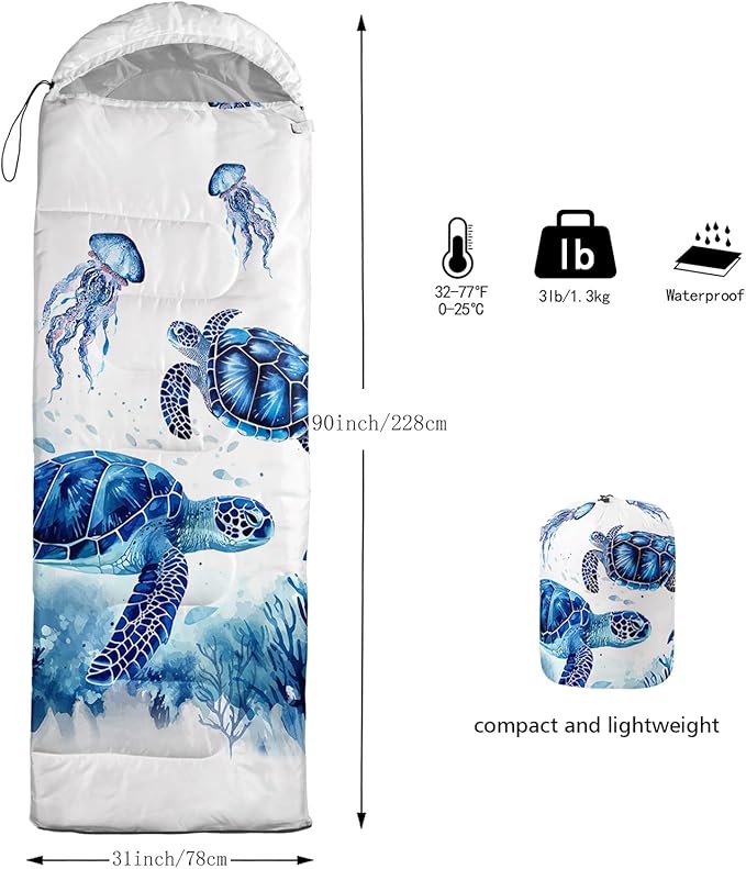- 【Fits For 3 Seasons】: Size - 31 by 90 inches (W x D). Our Blue Coral sleeping bag can be used in 3 seasons with a design temperature of 32℉-77℉(0℃-25℃)
