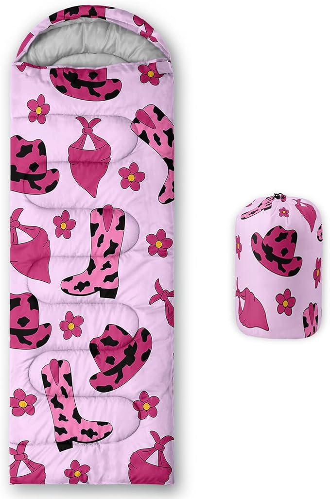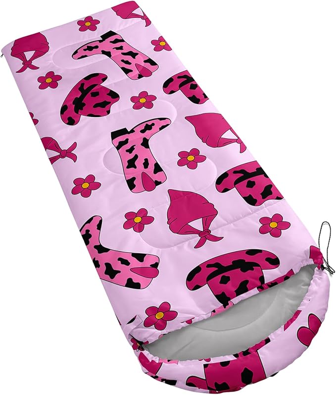 - Applicable For 3 Seasons: Our pink boots hats sleeping bag can be used in temperatures ranging from 32°F-77°F Except for the cold winter,sleeping bag have weatherproof to prevent from dampness,Size is 31 x 90 inches