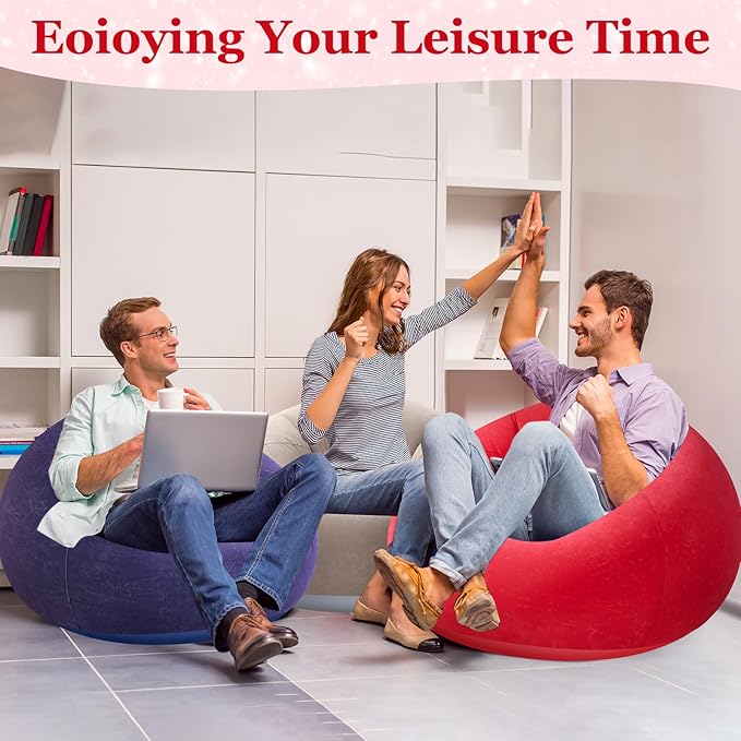 - Versatile Uses: you will get 6 inflatable bean bag chairs in 3 bright colors, namely coffee, blue and red, suitable for most people; These bean bag chairs are nice for leisure, nap, sleeping, reading, movie night, backyard family gatherings, or any kind of leisure activities; Provide this bean bag for bedroom convenience to your family and bring a good mood to everyone