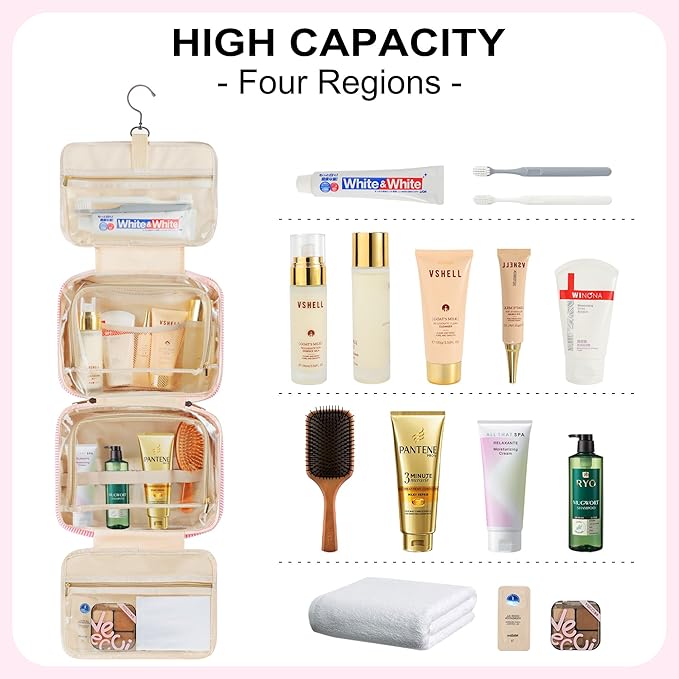 - Hang For Easy Access: The 360°swivel hook allows hanging the toiletry bag from bathroom, doorway, towel rack, coat hook, or wherever is available, making your toiletries and cosmetics displayed well for easy access and saving bathroom counter space as well.