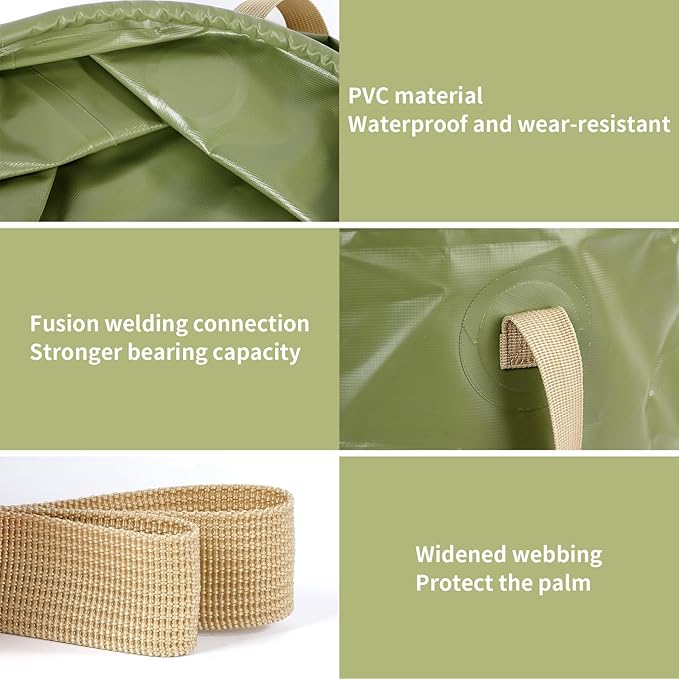 - This collapsible water bucket is made of food-grade PP with a waterproof PVC layer. Double-seamed bottom and sealed seams enhance durability and prevent leakage.