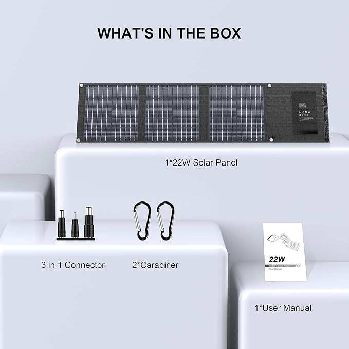 - What's in the box: You will get 1× Enginstar 22W Solar Phone Charger, 1× 1.5M (59 inches approx.) DC to DC Cable, 1× 3-in-1 DC Connectors, 4× Hooks, 1× User Manual and friendly Customer Service. Note: Any cloud or cover may influence the charging speed. We suggest you to reopen the solar panels and replug your device if the charging is too slow.
