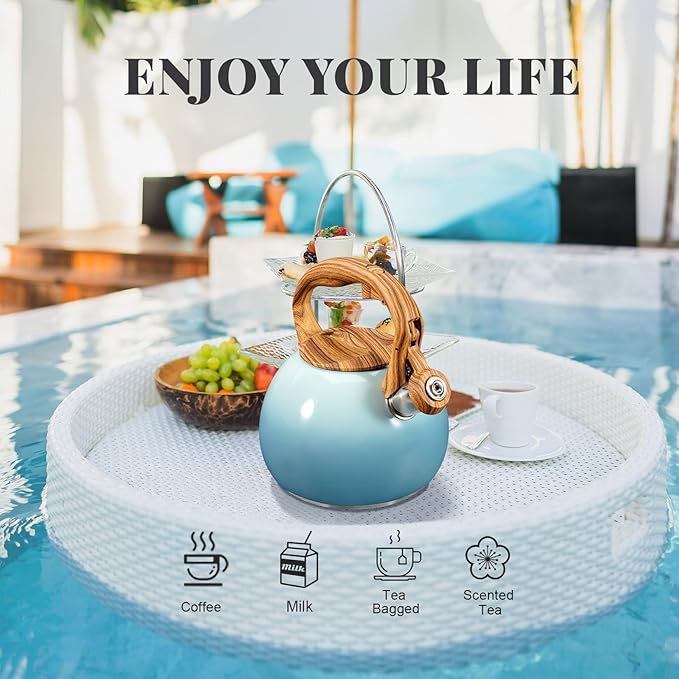 - 【Comfortable Whistling Sound】 When the water is boiling, the tea kettle will make a loud whistle to remind you, even in a noisy environment. So if you boiling water, you can also focus on doing housework, practicing yoga, watching movies, reading books or any other things in the same time, until you hear the whistle from the teapot