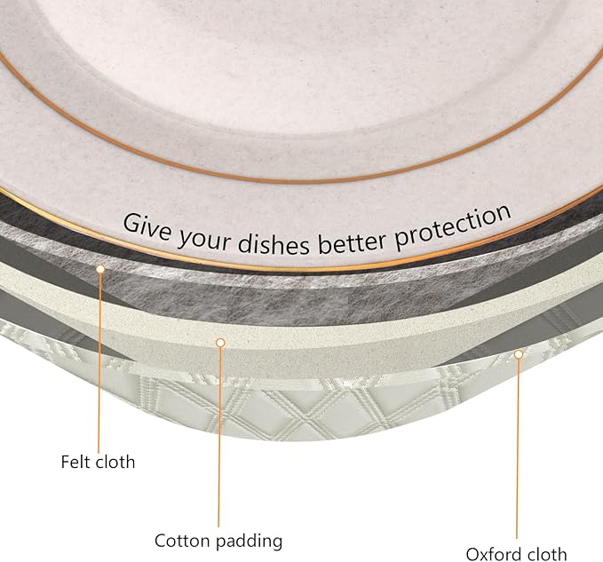 - Quality Material: Both the stemware and mug storage bins with 2 sturdy handles.They are hard shell constructed by thick hard cardboard covered with quilted oxford cloth, each with 12 compartments to keep your glasses/cups from bumping into each other. For 4 dish storage containers, we provide 12 free felt separators, in total 48 sheets for you to put between plates to prevent scratches. Please rest assured that they will provide the best protection for your fine/delicate and fragile dishes.
