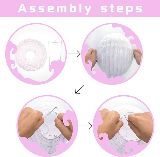 - ?�Easy to assemble?? Our lanterns are easy to unfold, assemble and hang up, and they can be folded flat for storage. All you need to do is to pull the two ends gently to open the lantern and insert the metal frame (included in the pack) into the lantern to keep its shape.