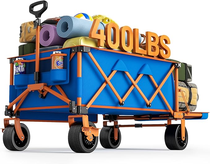 - Compact & Portable: Features a convenient foldable design, allowing the wagon to collapse into a compact size for easy storage and transport, perfect for car trunks or tight spaces.