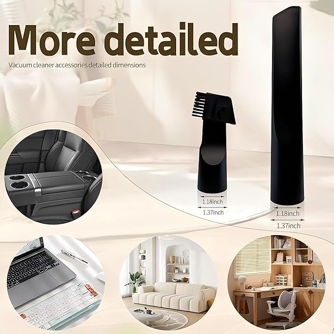 - 16 Pieces Value Set---4×Vacuum Extension Tube,1×Dryer Vent Vacuum Hose Attachment, 1×Flexible Crevice Tool, 1×Square Vacuum Brush Attachment, 1×Round Vacuum Brush, 1×Utility Nozzle, 1× Hard Crevice Tube, 1×Keyboard Class Small Dusting Brush, 5×Vacuum Cleaner Adapter.