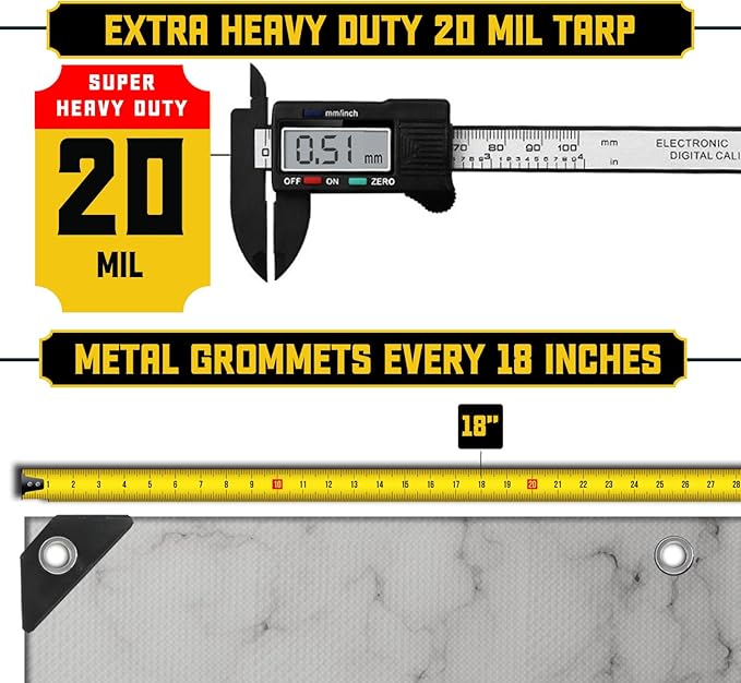 Core Tarps Extreme Heavy Duty 20 Mil Tarp Cover, Waterproof, UV Resistant, Rip and Tear Proof, Poly Tarpaulin with Reinforced Edges for Roof, Camping, Patio, Pool, Boat (Marble/White 20′ X 40′)