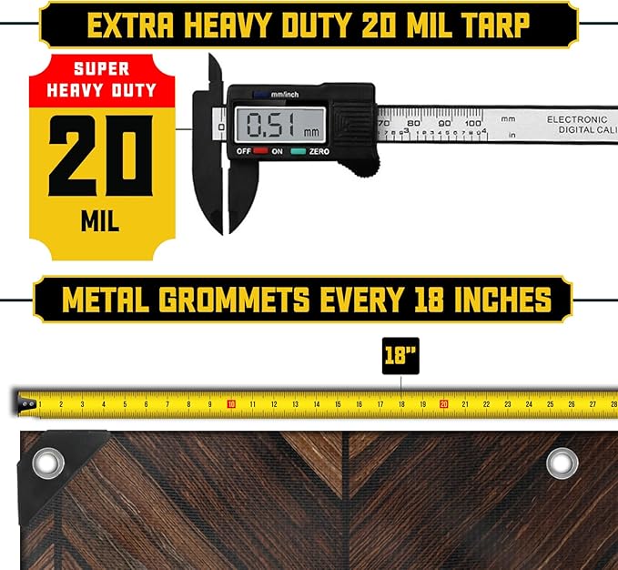 - STRONG GROMMETS & REINFORCED EDGES: The protective tarp has a 16 x 16 weave count, reinforced edges and metal grommets every 18 inches. The tear-resistant material is super durable while the metal grommets allow you to tie down the tarpaulin cover easily, using bungee cords or a strong rope.