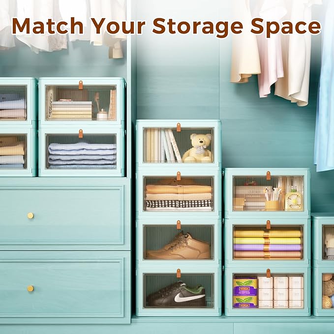 - Easy to Use and Foldable - The plastic storage bins are easy to assemble without tools, you can stack storage boxes and assemble them into a bedding organization, clothes organizer or shoe storage cabinet etc. When not in use, the storage boxes can be folded to take up little space in your home or cars