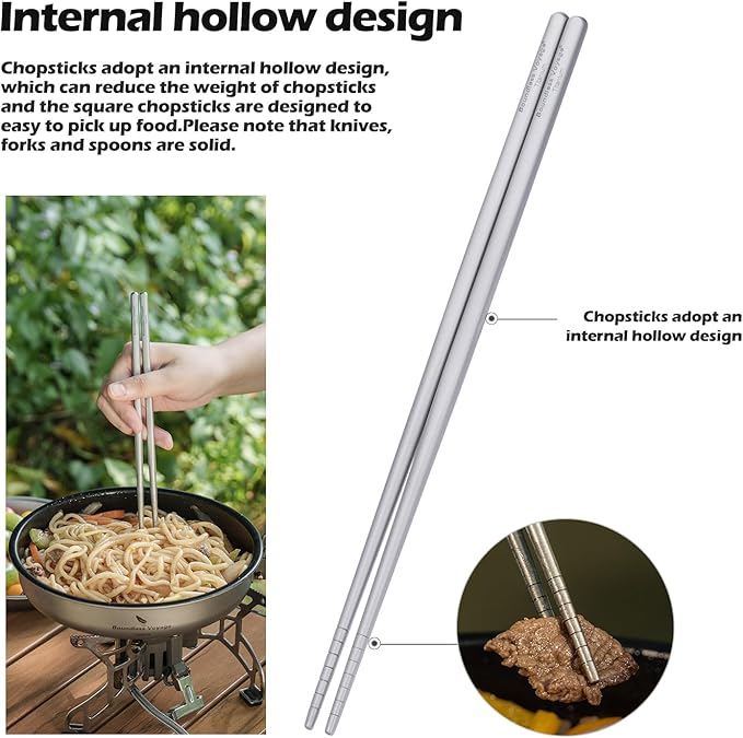 - OUTDOOR PORTABLE COMBINATION SUIT - knife, fork, spoon and chopsticks are complete to meet different outdoor needs. Camp Kitchen Utensils Cutlery Set are much better than any Plastic/Wooden Cutlery Set or Stainless Steel Cutlery Set.