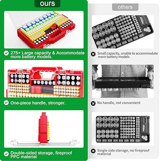 - 1. Ultra-large capacity battery box: Narotood Battery holder specially designed for battery storage,Battery box Store up to 280+Different types of battery packs and BT168 battery tester,Can help you quickly test the life of the battery pack and classify it,Save storage space,Meet your daily needs. Compared with most battery storage boxes on the market, larger capacity and more beautiful.