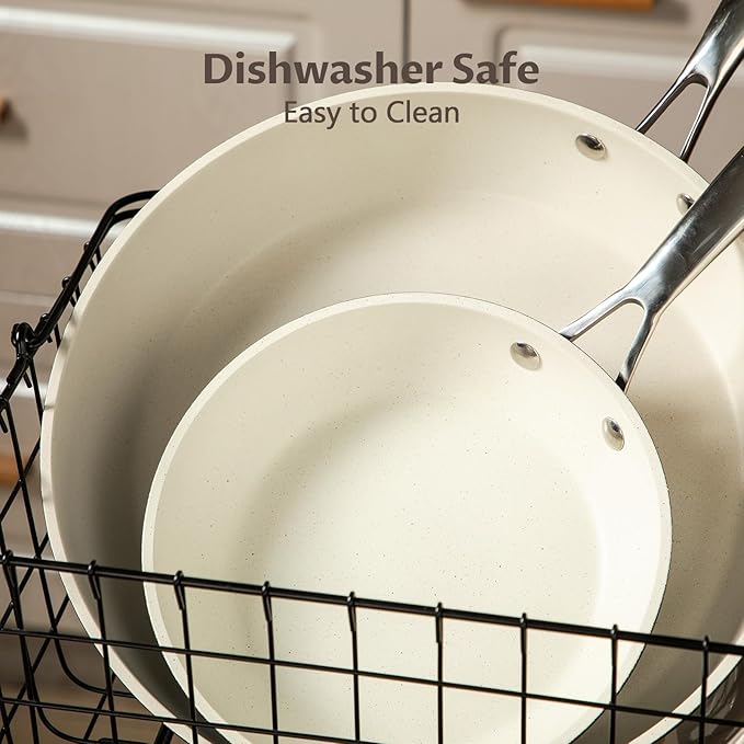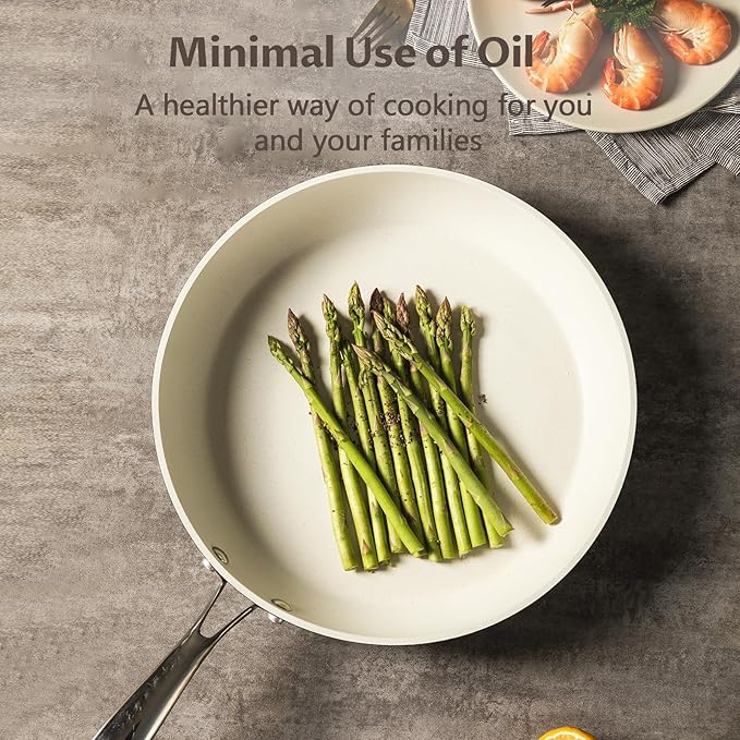 UCC LIFE Nonstick Frying Pan Skillet, wok pan, Stainless Steel Handle, PFOA Free Compatible with All kitchen Stovetops (12 Inch White)