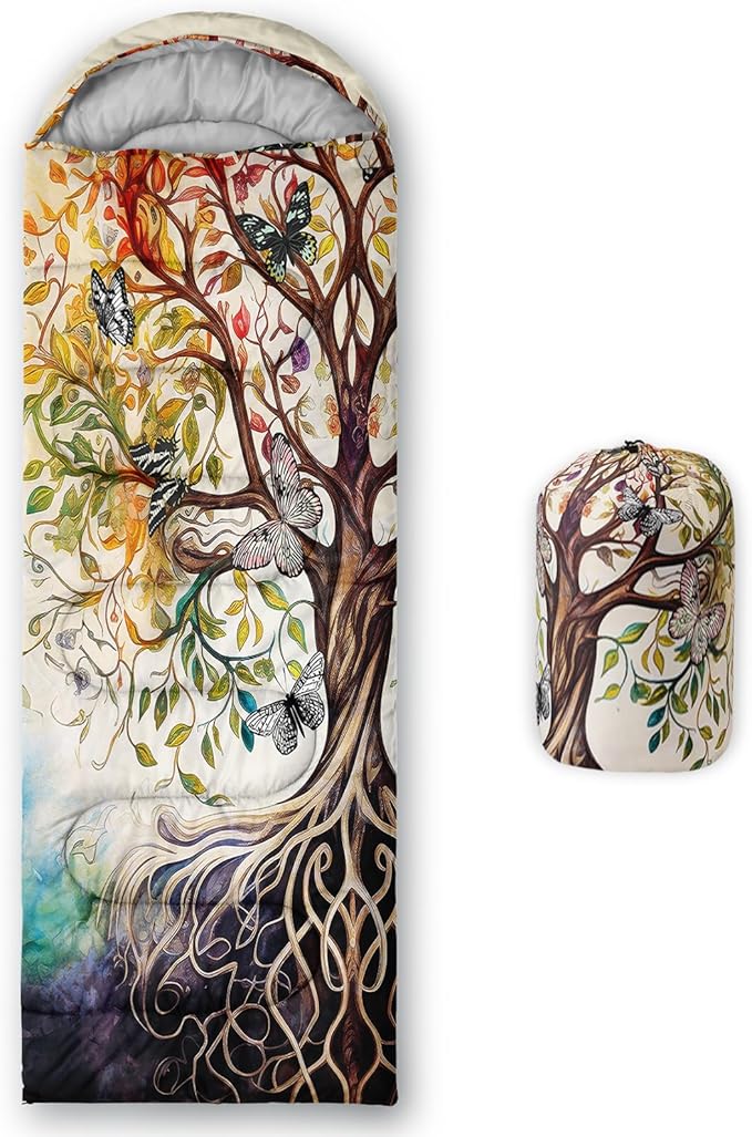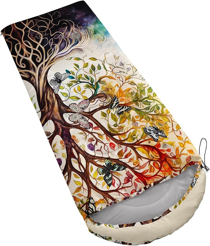 - Unique Tree of Life Design:This Tree of Life pattern sleeping bag is made of 3D digital printing with vibrant colors and patterns,size: 31W x 90L inches,temperature range: 32℉-77℉ (0℃-25℃),it also also have a weather resistant waterproof design to keep you warm and prevent you from any dampness,can be used in 3 seasons