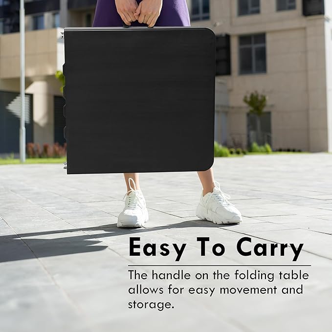 - Versatile 4ft Folding Table:Folding table 4ft black is perfect for events like parties, picnics, and camping. It's designed for easy setup and takedown, making it an ideal portable folding table. Suitable for both indoor and outdoor use, folding table for outside is durable and lightweight.