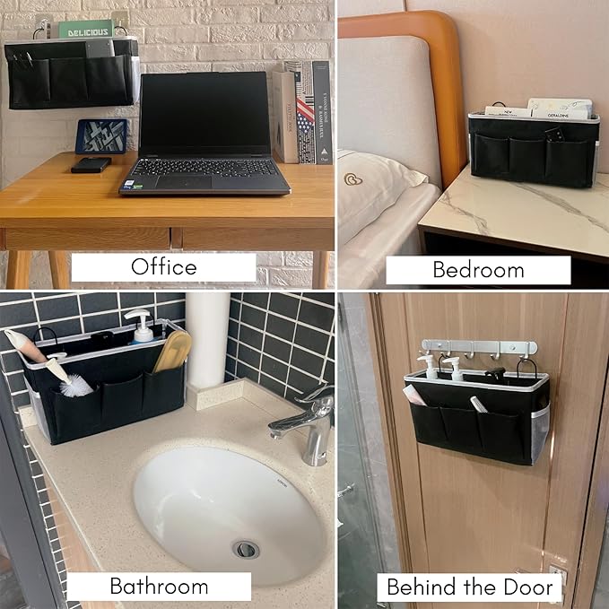 - 【Wide To Use】The hanging organizer works great on any chair, bedside, door, or wall that you can hang under the desk, over the cabinet door, or beside the closet shelf. It is suitable for Bedroom, Bathroom, Office, RV Camper, and more. All rooms will become more tidy and comfortable with it.