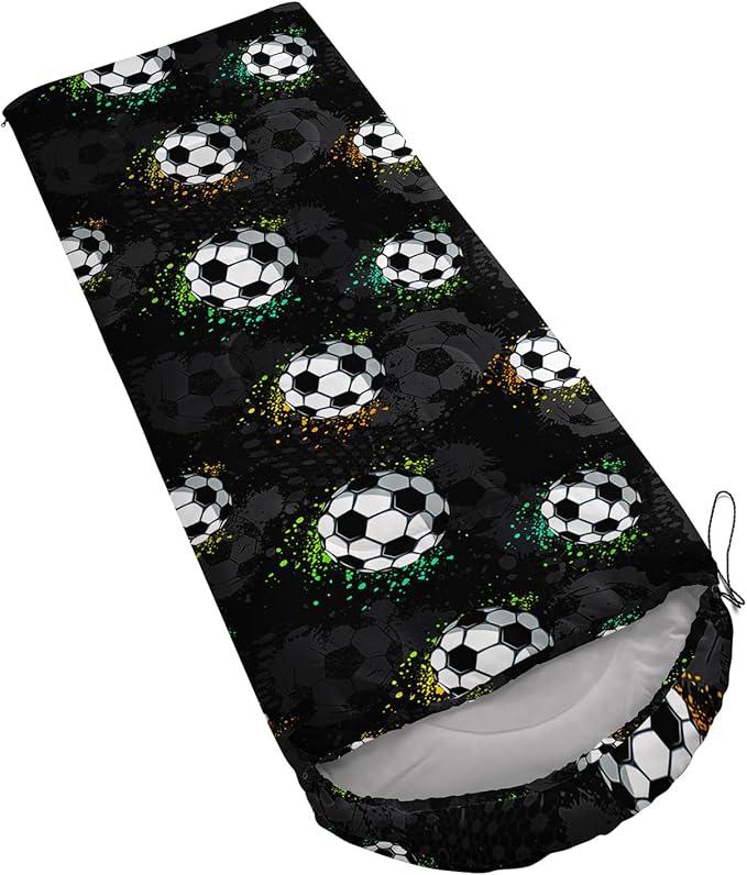 - Easy To Clean: This Soccer print camping sleeping bag can be hand wiped or machine washed, versatile and easy to clean, versatile and convenient, comes with a Carrying Bag for easy portability