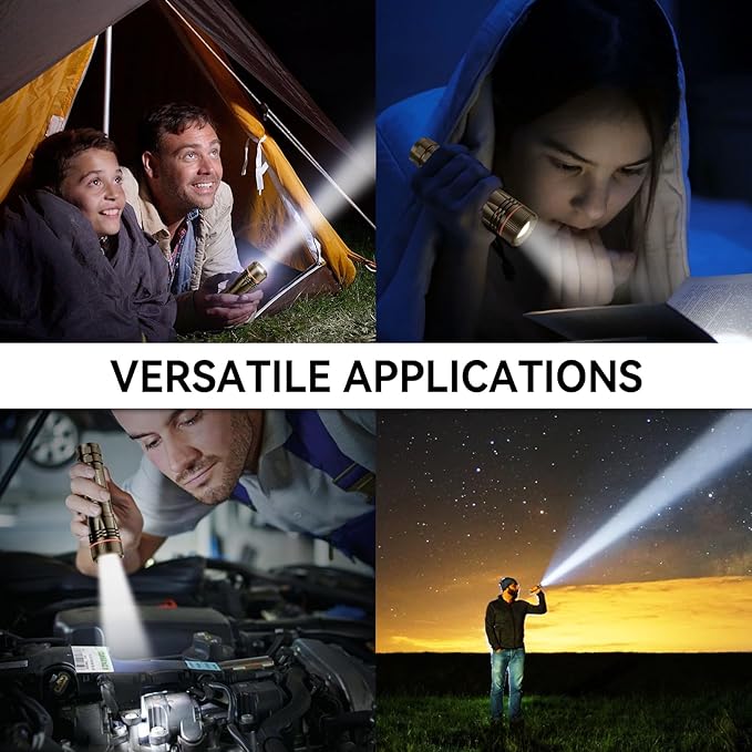 - 2 Pack Tactical Compact Flashlight: These small flashlights with 4.7’’ height and 106g, lightweight enough to carry comfortably and easily fit in your pocket, backpack, purse or car console compartment, ensuring convenient storage and quick access. Keep one at home for emergency backup and another one to use outside, such as dog walking, camping, hiking, fishing, etc
