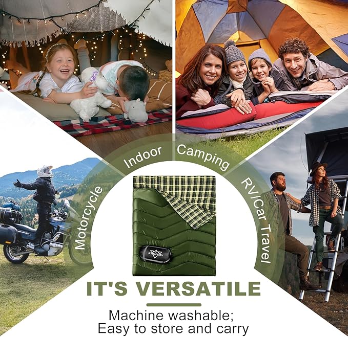 - CAMP LIKE A PRO, SLEEP LIKE A BABY! BECAUSE THE BEST ADVENTURES START WITH A GOOD NIGHT'S SLEEP! Whether you’re a seasoned camper or a first-timer, our flannel sleeping bag has got your back (and your front, and your toes). With unbeatable warmth, extra width, and cloud-like softness, you’ll wake up refreshed and ready to conquer the wilderness—or at least the campfire breakfast.