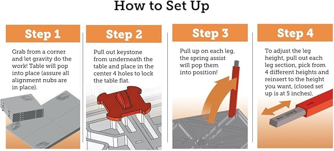- Adjustable: Legs adjust in 1-inch increments, from 5 to 8-inches, ensuring stability and allowing you to get the table level on any terrain.