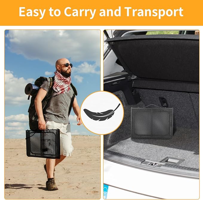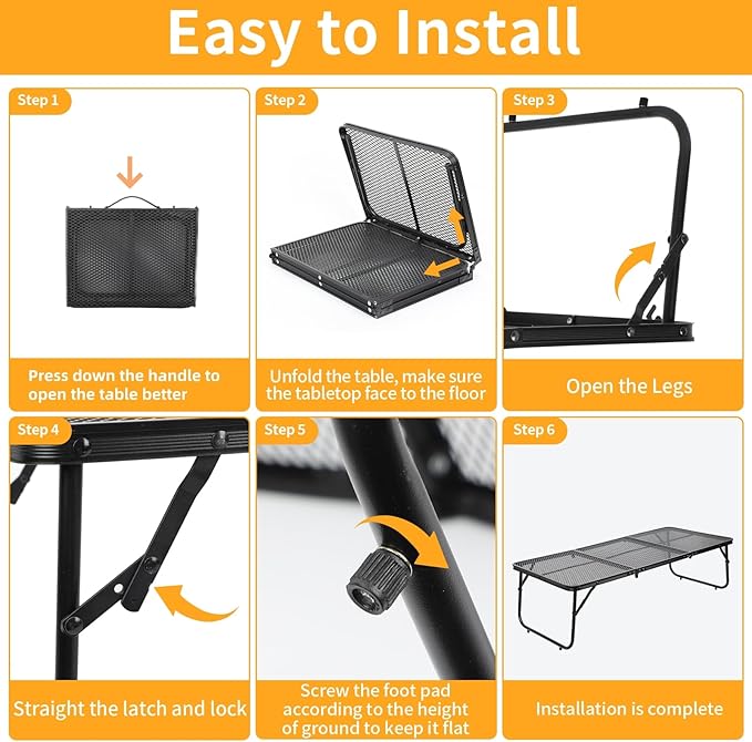 - Heat & Waterproof TOP - Moosinily portable grill table, with 1.6mm steel mesh top covered by powder painting, perform well no matter in heat or in water. The eage of the steel mesh has been polished so it would not be sharp for hands. The thicker 1050A aluminum alloy frame is lightweight, anti-corrosion and rust resistant which can use for most outdoor scenes in several year. 3 Support Rods and the tabletop support rod keep the table stable, this folding camping table has a load capacity of 30 lbs (evenly distributed). The desktop and frame can be quickly cleaned with a damp cloth, so you don't have to worry about stains