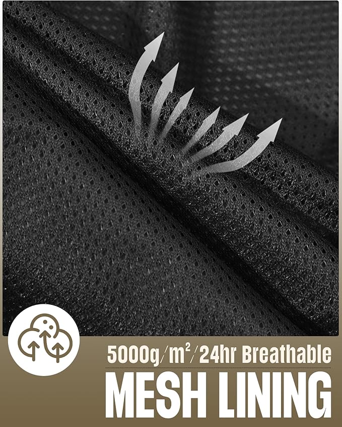 • Breathability: Packable rain jacket mens is breathable at 5000g/m2/24hr for excellent comfort. The raincoat for men lining is made of breathable mesh fabric, which allows air to circulate quickly and effectively absorbs water vapor to keep you dry and cool.