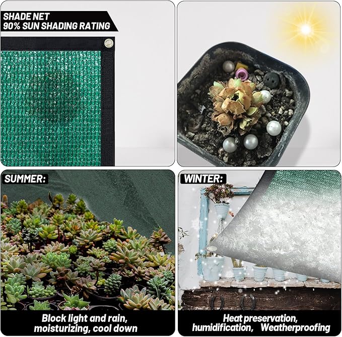- ??0% Shading Rate?‘Made of 100% New High Density Polyethylene (HDPE) fabric material, has a shading rate up to 90% can avoiding direct sunlight while allowing free air circulation.