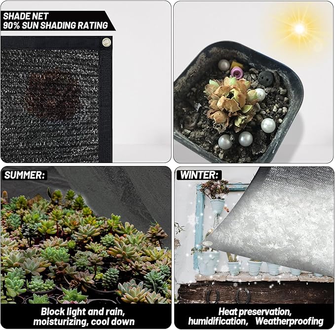 - ??0% Shading Rate?‘Made of 100% New High Density Polyethylene (HDPE) fabric material, has a shading rate up to 90% can avoiding direct sunlight while allowing free air circulation.