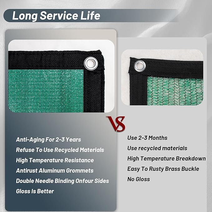 - ??0% Shading Rate?‘Made of 100% New High Density Polyethylene (HDPE) fabric material, has a shading rate up to 90% can avoiding direct sunlight while allowing free air circulation.