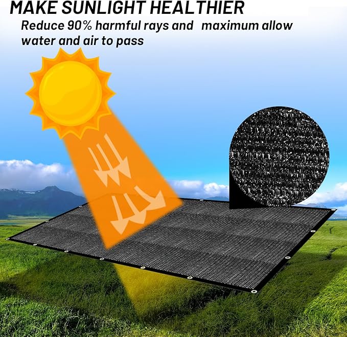 - ??0% Shading Rate?‘Made of 100% New High Density Polyethylene (HDPE) fabric material, has a shading rate up to 90% can avoiding direct sunlight while allowing free air circulation.