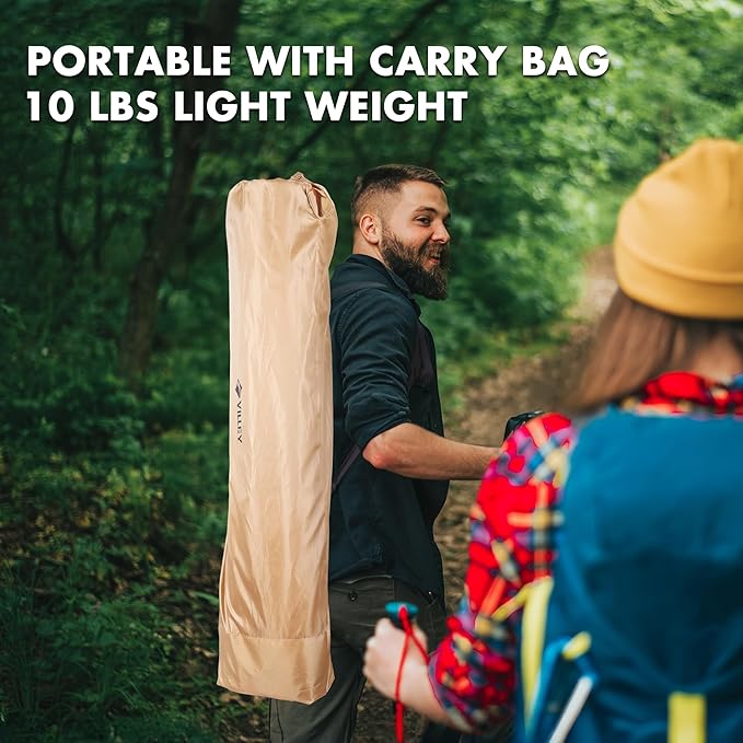 VILLEY Reclining Camping Lounge Chair Adjustable Foldable Chair for Adults with Removable Footrest, Headrest & Storage Bag Supports Up to 330 LBS Beige