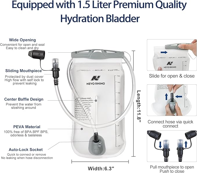 - After sale: N NEVO RHINO running vest for men with 1.5L water bladder. If you have any questions about this hydration running vest, please reach out to us, we will reply within 24 hrs