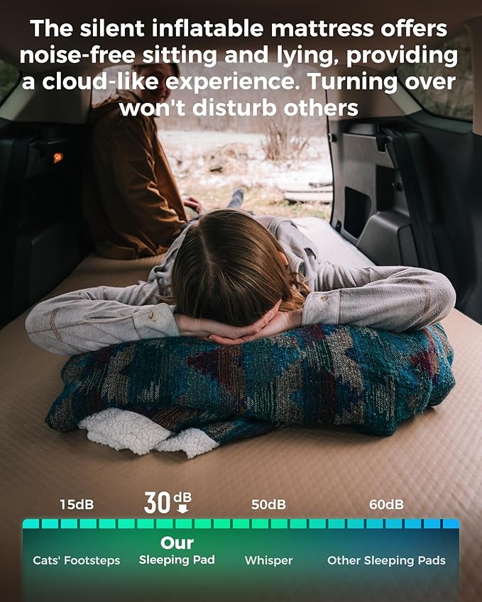 - No More Pressure Points – Even on Rocky Ground: Drop-stitch construction with thousands of high-tensile, noise-reducing fibers delivers uncompromising support — performing flawlessly on snow, sand, and rugged terrain without uncomfortable pressure points. Plus, the tightly woven fabric and internal fiber grid eliminate rustling sounds, ensuring silent stability whether you shift positions or sleep under the stars.