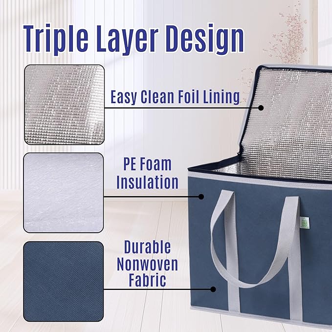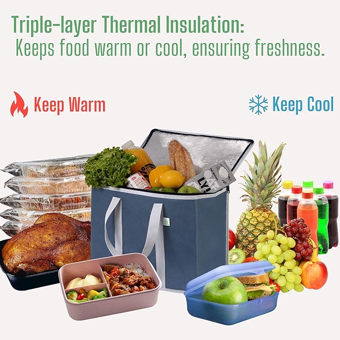 - INSULATED FOR FRESHNESS: Triple-layer thermal insulation fabric design keeps your food warm or cool. Great for frozen groceries, produce, and even hot food items. Can be used in place of your traditional cooler in a short time.