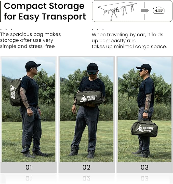 ONETIGRIS SUPRANUBIS Camping Cot, Height Adjustable with Cot Leg Extenders, Strong Support 330lbs, Lightweight Comfortable Folding Bed for Camping, Hiking, Travel, Truck, Beach, Office Nap