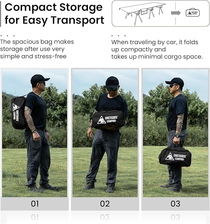 ONETIGRIS SUPRANUBIS Camping Cot, Height Adjustable with Cot Leg Extenders, Strong Support 330lbs, Lightweight Comfortable Folding Bed for Camping, Hiking, Travel, Truck, Beach, Office Nap