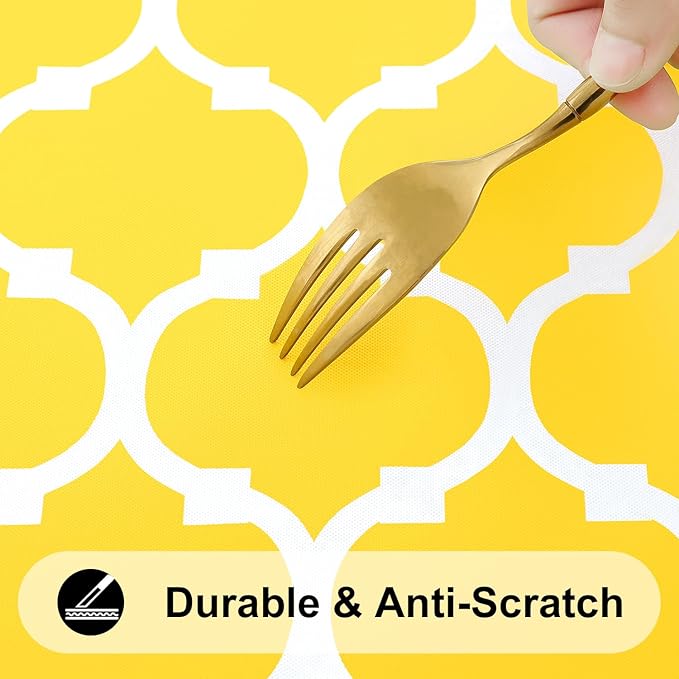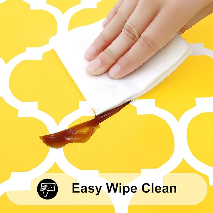 - [Waterproof & Wipe Clean] Our table cover surface is made of selected vinyl material, which can effectively waterproof. Spill proof coating makes tablecloth easy to clean, just wipe it off with a damp sponge or rag in a minute.