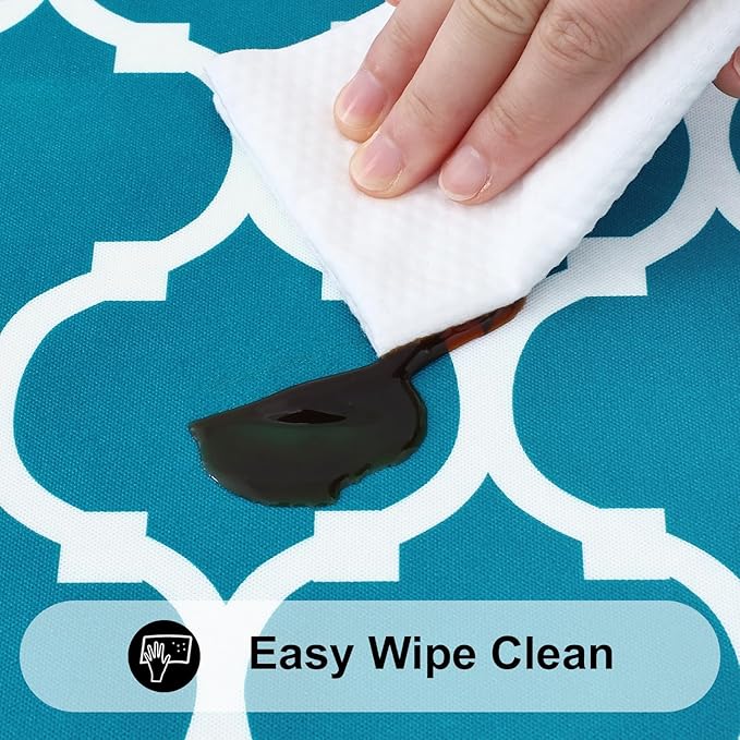 - [Waterproof & Wipe Clean] Our table cover surface is made of selected vinyl material, which can effectively waterproof. Spill proof coating makes tablecloth easy to clean, just wipe it off with a damp sponge or rag in a minute.