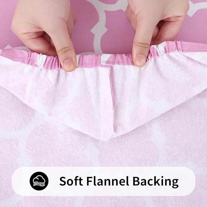Smiry Rectangle Picnic Table Cover, Waterproof Elastic Fitted Camping Tablecloths for 4 Foot Tables, Wipeable Flannel Backed Vinyl Tablecloth Protector for Indoor, Outdoor (Pink, 30x48 Inches)