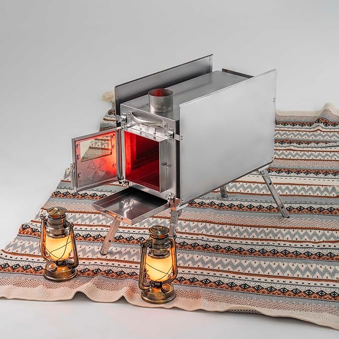 Rbm Outdoors Camping Stoves for Tents, Shelters, Yurts. Portable Wood Burning Folding Stove for Camp, Cooking Outdoor. Compact Folding Pipes Chimney (Caminus S)