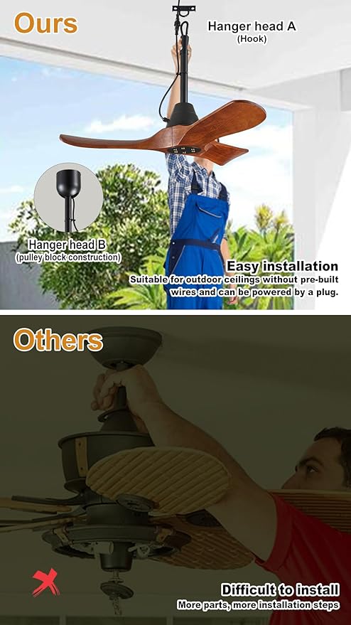 - ๐ Versatile Mounting Options for Any Ceiling ๐: Choose between Downrod mounting and Hook mounting based on your ceiling's characteristics. Opt for Downrod mounting with hardwired power if your ceiling has reserved wires. Alternatively, select Hook mounting for ceilings without reserved wires, enabling power through a socket with a convenient plug-in setup. Included are 16 FT extension cords, facilitating seamless installations even for longer distances. Customize your installation for optimal convenience and adaptability.